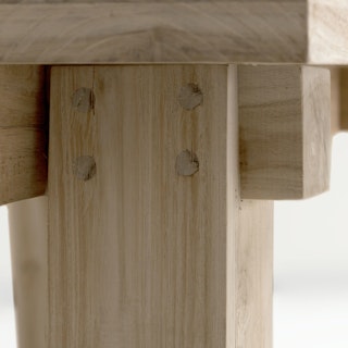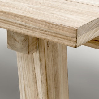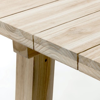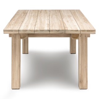 Solid construction and a bold design makes this an outdoor heirloom dining piece. Left raw, with no chemical sealants, the true character of 100% teak is evident in its beautiful grain. As it ages, teak will naturally develop a stunning silvery gray color and will continue to change with the seasons. This table is suitable for both indoor and outdoor use and it pairs beautifully with many styles of chairs. Our teak is traceable and certifiably sourced.