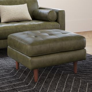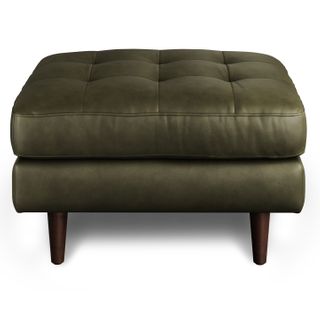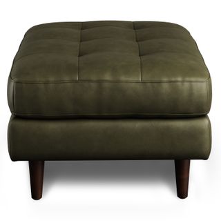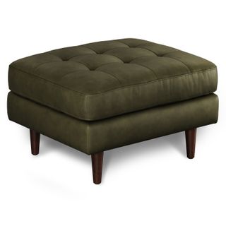 Sven 30" Tufted Leather Ottoman - Charme Green
