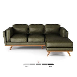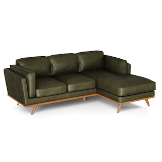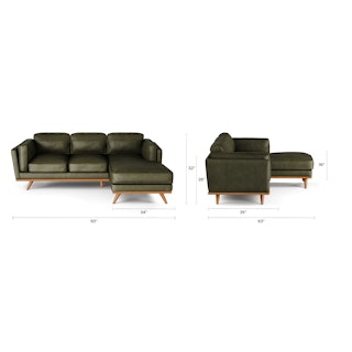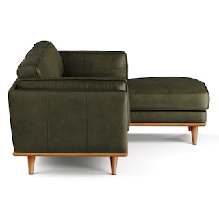 A honey oak stain trim and voluptuous leather cushions define this sectional with an updated mid-century modern style. Sink into the high-density foam-filled cushions and relax — you've come home to your new favorite place.
