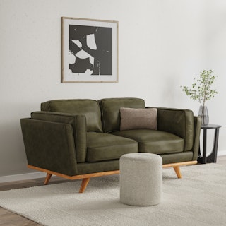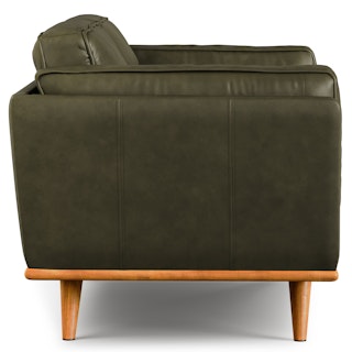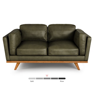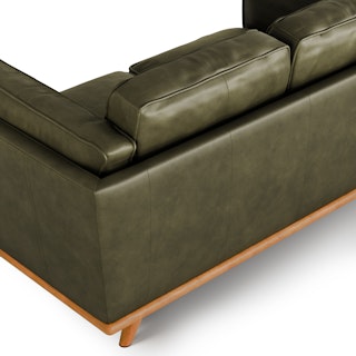 The Timber will inspire you to explore — even if your journey only goes as far as the pantry. With its oak wood trim, plump high-density foam-filled cushions, and full-aniline dye process, the Timber is sinkable and plush but cleans up really nicely. Natural color variations, wrinkles, and creases are part of the unique characteristics of this leather. With regular use, it will develop a relaxed vintage look.