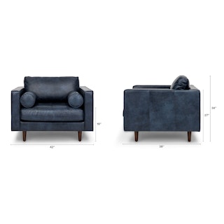 Sven 42" Tufted Leather Lounge Chair - Oxford Blue