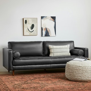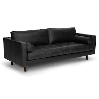 Sven 88" Tufted Leather Sofa - Oxford Black