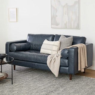 Sven 72" Tufted Leather Loveseat - Oxford Blue