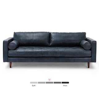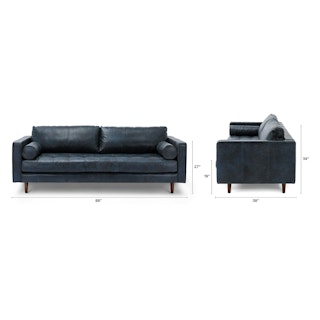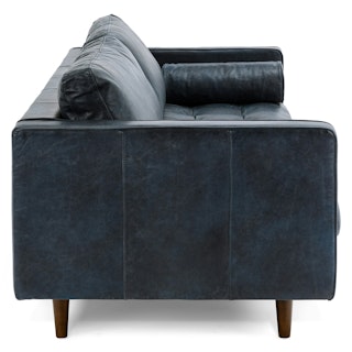 Sven 88" Tufted Leather Sofa - Oxford Blue
