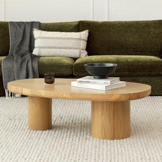 Nature’s on your side. The organically shaped Baarlo Coffee Table is a sturdy ode to forest serenity. Constructed from a combination of solid oak and oak veneer, this coffee table features contrasting cylindrical legs and a spacious oval-shaped top. With its raw organic form and natural wood grain, the Baarlo is the ultimate eye-soother for any lived space.