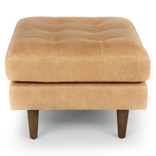 Sven 30" Tufted Leather Ottoman - Charme Tan