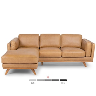 Sturdy, relaxed, accommodating, upholstered with our vintage-esque Charme Tan leather — everything you already love about our Timber Sofa, but with room for more.