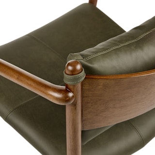 This chair looks like a musician that aged really, really well. The Lento Charme Green Lounge Chair is made from a solid, walnut-stained wood frame. This green leather lounge chair is equal parts functional and sexy: its comfortable foam-padded seat and durable buffalo leather upholstery makes this perfect for leaning into a boisterous conversation, or for quietly contemplating your next move.