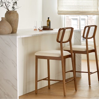 A counter stool with some backbone. And by backbone, we mean a backrest made of natural cane woven into a classic fisheye pattern. What more do you need to embolden you to sit up tall? How about a generously padded seat? The Netro Counter Stool has that too.