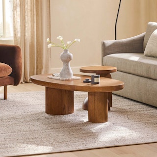 Nature’s on your side. The organically shaped Baarlo Coffee Table is a sturdy ode to forest serenity. Constructed from a combination of solid oak and oak veneer, this coffee table features contrasting cylindrical legs and a spacious oval-shaped top. With its raw organic form and natural wood grain, the Baarlo is the ultimate eye-soother for any lived space.