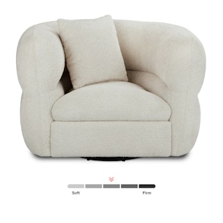 What better way to top off the day than lounging in an embrace of the Quinn? With its overstuffed cushions and ever-so-soft fabric covers, the Quinn invites you to unwind. Say goodbye to rigid, uncomfortable sofas and hello to pure comfort — just don't blame us if you get too dizzy spinning around on its swivel base.