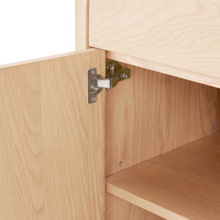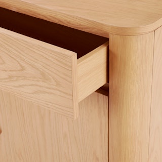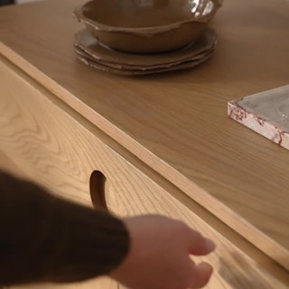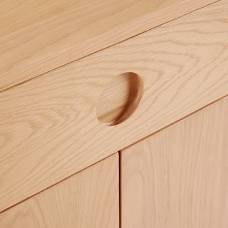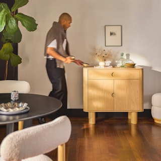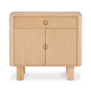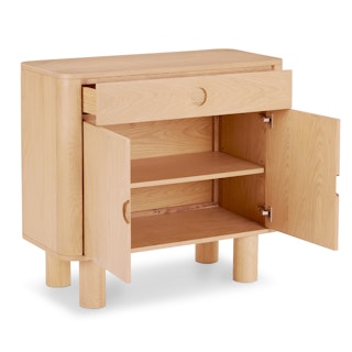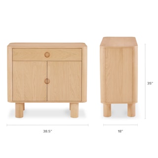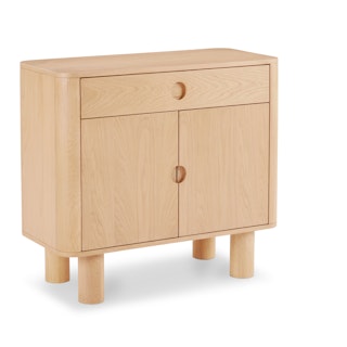 A simple form that's more than the sum of its parts, the Adel cabinet is boldly sculptural, but but perfectly sized for a small space. With solid wood edges and discreet recessed pulls, the Adel is a statement maker that doesn't overstep.
