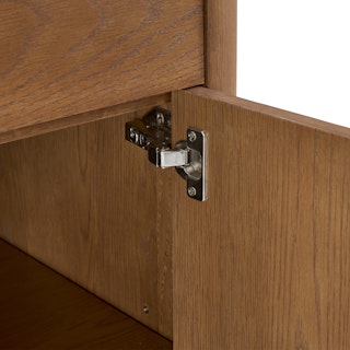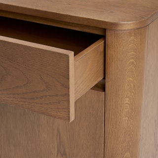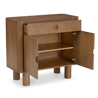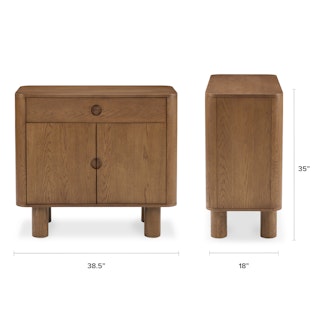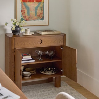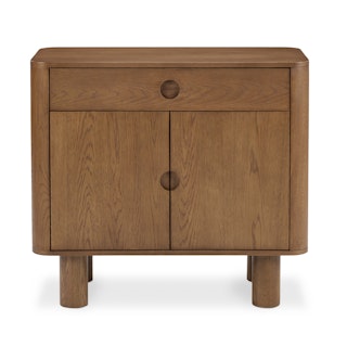 A simple form that's more than the sum of its parts, the Adel cabinet is boldly sculptural, but but perfectly sized for a small space. With solid wood edges and discreet recessed pulls, the Adel is a statement maker that doesn't overstep.