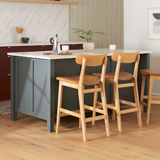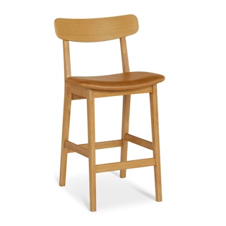 Ahead of the curve. The Ecole stool features a solid wood frame topped with a generously sized leather seat. The precisely curved back offers remarkable support while adding to the mid-century schoolhouse feel. Whether sharing childhood stories over plates of cacio e pepe with your extended family or burning the midnight oil with your closest friends, the Ecole stool is up for anything.