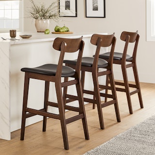 Ahead of the curve. The Ecole stool features a solid wood frame topped with a generously sized leather seat. The precisely curved back offers remarkable support while adding to the mid-century schoolhouse feel. Whether sharing childhood stories over plates of cacio e pepe with your extended family or burning the midnight oil with your closest friends, the Ecole stool is up for anything.