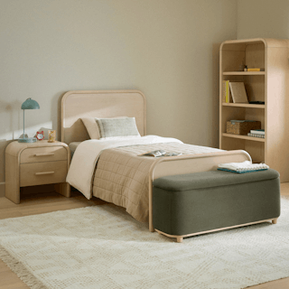 Holds your feet and your stuff. The Maribo Ottoman, with its soft-close lid and ample storage space, is a stylish double-threat.