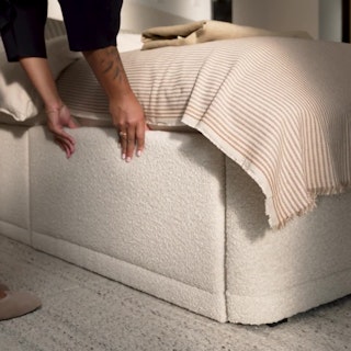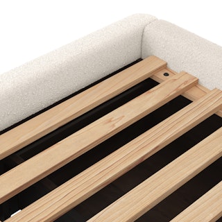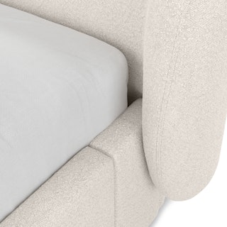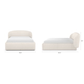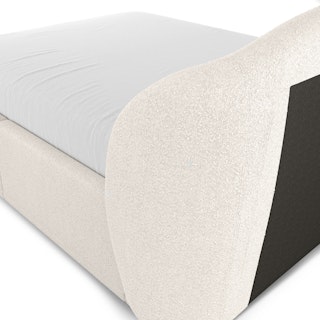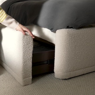 A floating nightstand, a plush and curvy bouclé fabric bed... sounds dreamy. The Lenia Nightstand is a minimalist gift wrapped in a classic mid-century modern package. The Kayra however, with its sculpted headboard and curvy proportions wrapped in fuzzy-but-chic fabric, feels more like a big bear hug — without the claws.