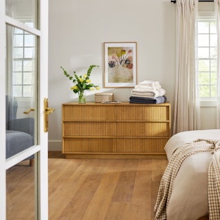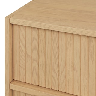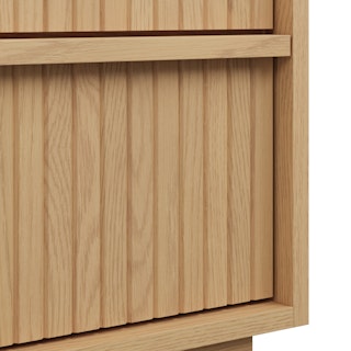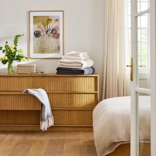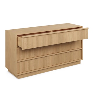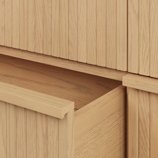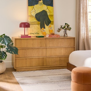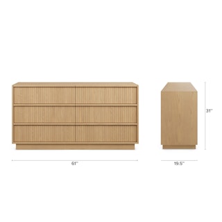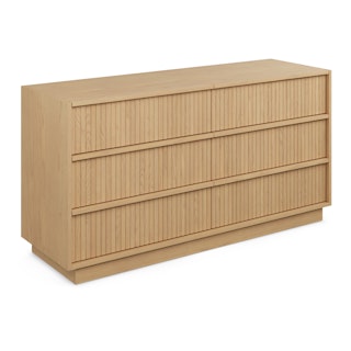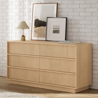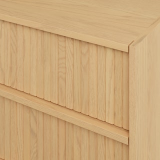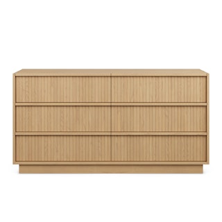 With a lovely tambour facade and six soft-close drawers, the Kouva dresser is as pretty as the clothes you'll store in it. Solid wood handles and a heavy wooden plinth base offer sturdiness and visual interest without being overly showy. Interesting... refined... well-balanced... sounds like a perfect bedroom companion.