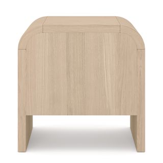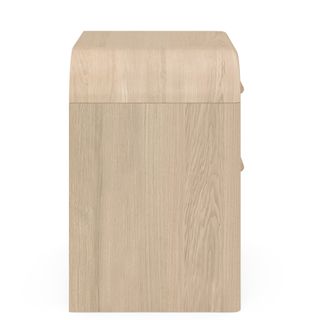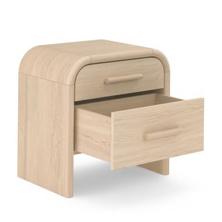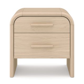A design that's ahead of the curve. The Faydra nightstand is bedside storage at its most avant-garde. With a unique sloping design and two handy drawers, the Faydra is more than just a pretty storage option: a veneered exterior and sculptural solid-wood handles make this a pretty beautiful place to leave your bedside essentials.