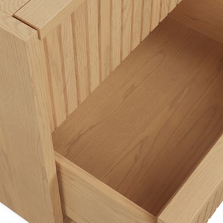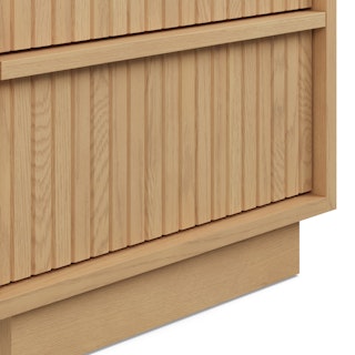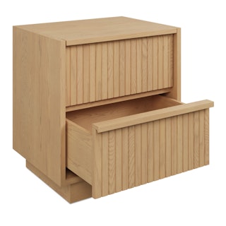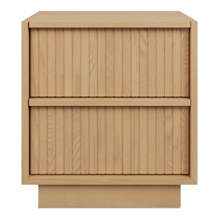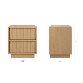 With a lovely tambour facade and two soft-close drawers, the Kouva nightstand is as pretty as the bedside essentials you'll store in it. Solid wood handles and a heavy wooden plinth base offer sturdiness and visual interest without being overly showy. Interesting... refined... well-balanced... sounds like a perfect bedside companion.