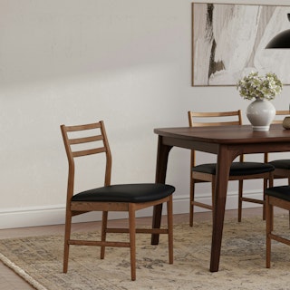 Wosla Leather Dining Chair - Smoked Oak and Black