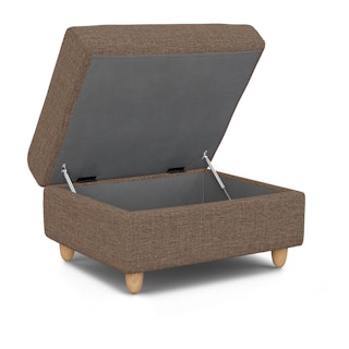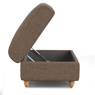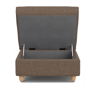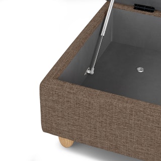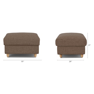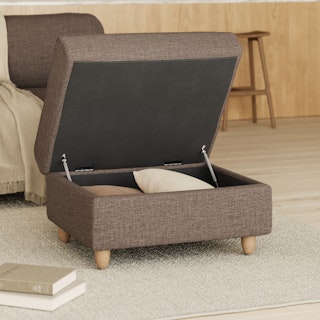 Ottoman? Actually, it's a treasure chest. With its low-profile curvaceous shape and ridiculously cushy cushion, it's ready to stow away your throw blankets, pillows, or that bag of chips you don't want to share.