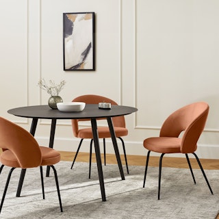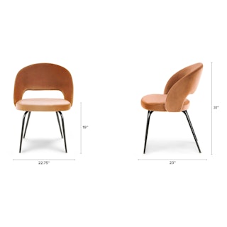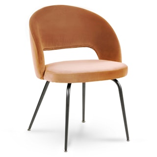 Bisou bisou! Don’t mind if we do. The Kapp dining chair exudes playful mid-century style with thoughtful updates. A keyhole back and tapered metal legs nod to the design sensibilities of the 50s. Upholstered in velvet, the Kapp brings a little extra glam to an atomic classic.