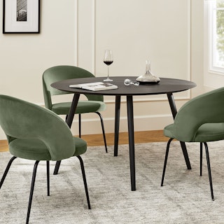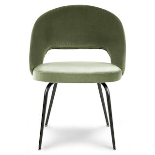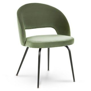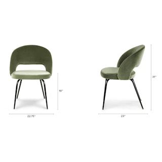 Bisou bisou! Don’t mind if we do. The Kapp dining chair exudes playful mid-century style with thoughtful updates. A keyhole back and tapered metal legs nod to the design sensibilities of the 50s. Upholstered in velvet, the Kapp brings a little extra glam to an atomic classic.