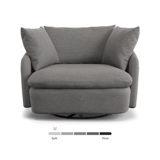 Cloud kingdom, population: you. The Leigh Grand swivel chair is the bigger brother, boasting an extra 14" in seat depth alone — nap central, we know. With thoughtful details that make it the perfect place to put your feet up and read/watch a show/stare into the middle distance. Upholstered with stain-resistant LifeGuard fabric, the Leigh is here to help you rest easy.