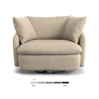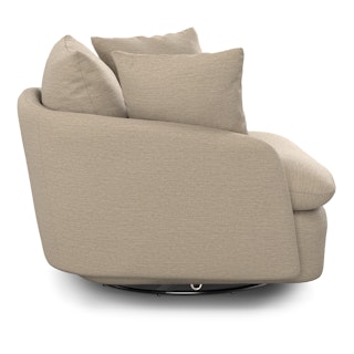 Cloud kingdom, population: you. The Leigh Grand swivel chair is the bigger brother, boasting an extra 14" in seat depth alone — nap central, we know. With thoughtful details that make it the perfect place to put your feet up and read/watch a show/stare into the middle distance. Upholstered with stain-resistant LifeGuard fabric, the Leigh is here to help you rest easy.