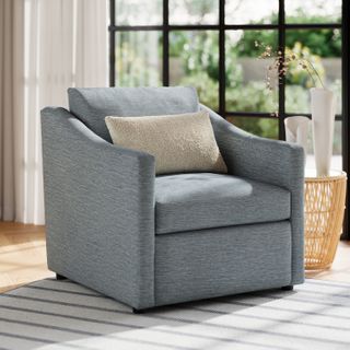 A minimal look with maximum impact... The Landry marries laid-back comfort with elegant details. The results? A lounge chair that is as comfortable hosting movie night as it is cocktail hour. With its sloping sleigh-style arms and clean, straight lines, it is a versatile piece that pairs with various interior design styles. Whether against a warm white backdrop, a boldly patterned rug, or draped with your favorite blanket, the Landry adapts to your unique style, adding a touch of easygoing elegance to any setting.