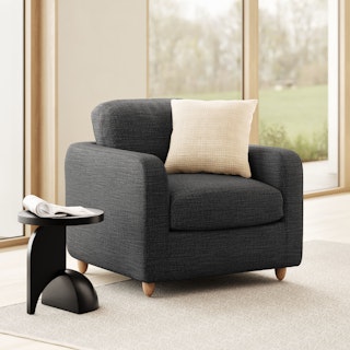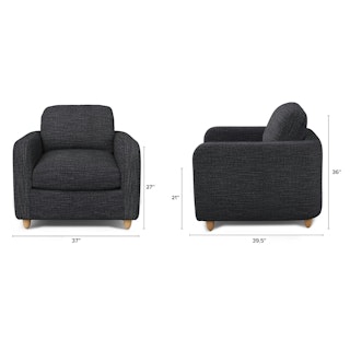 We love this chair. Out of all of the armchairs we tried it was the most comfortable and feels wide and comfortable but also fits in our small space. Great size...  More