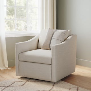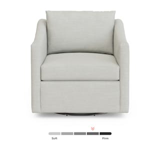 A minimal look with maximum impact... The Landry swivel chair marries laid-back comfort with practical swivel functionality. The result? A lounge chair that's as comfortable hosting movie night as it is cocktail hour. With its sloping sleigh-style arms and clean and straight lines, set atop a 360-degree swivel base, it is a versatile piece that pairs with various interior design styles. Whether against a warm white backdrop, a boldly patterned rug, or draped with your favorite blanket, the Landry adapts to your unique style, adding a touch of easygoing elegance to any setting.
