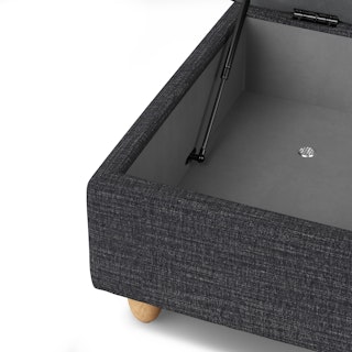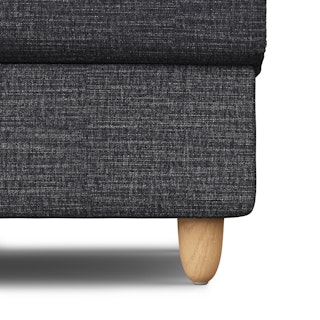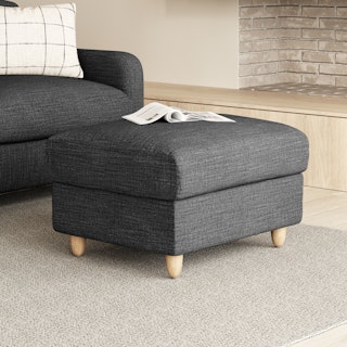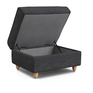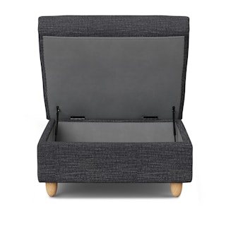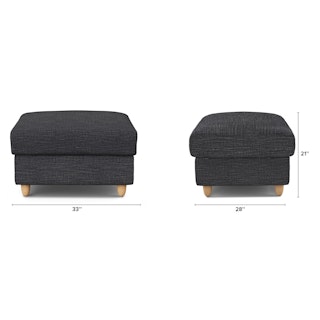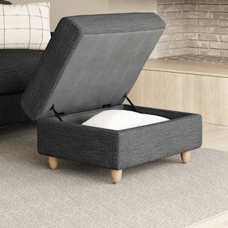 Ottoman? Actually, it's a treasure chest. With its low-profile curvaceous shape and ridiculously cushy cushion, it's ready to stow away your throw blankets, pillows, or that bag of chips you don't want to share.