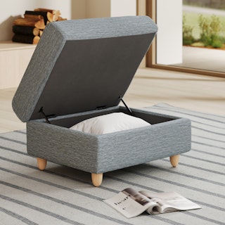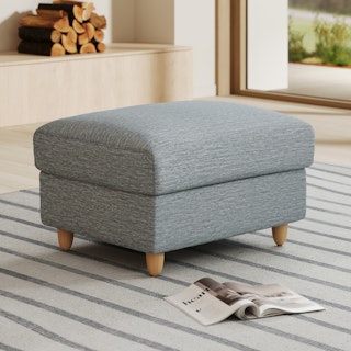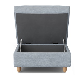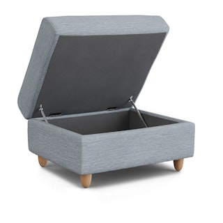 Ottoman? Actually, it's a treasure chest. With its low-profile curvaceous shape and ridiculously cushy cushion, it's ready to stow away your throw blankets, pillows, or that bag of chips you don't want to share.