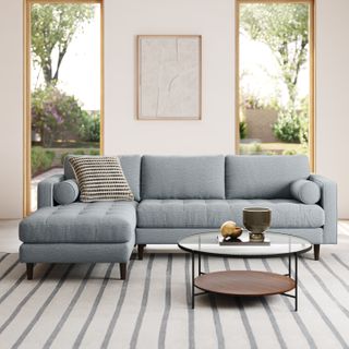 Sven 100" Tufted Left Sectional - Silver Light Blue