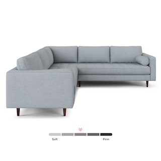The Sven Corner Sectional is everything you love about the classic Sven, but with double the Sven. The tufted bench seat supports super-long Netflix® marathons, and overstuffed cushions and round bolsters have your back no matter what position you chill in. Upholstered with LifeGuard, Article's proprietary performance fabric: stain-repellant fibres are woven in at the fabric level, making all LifeGuard products inherently stain resistant and easy to care for.