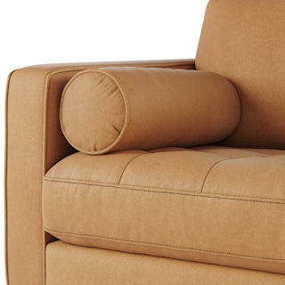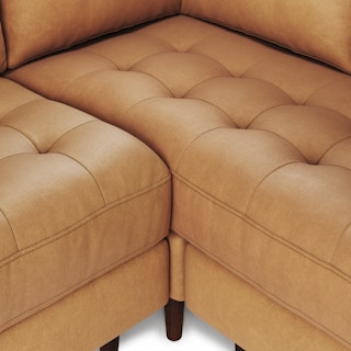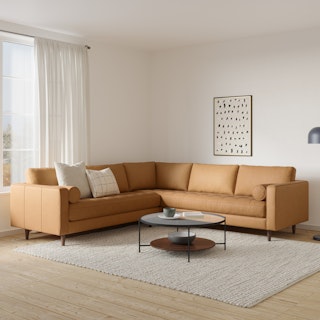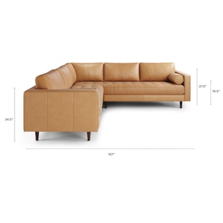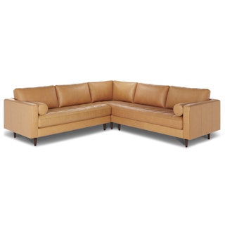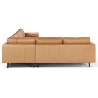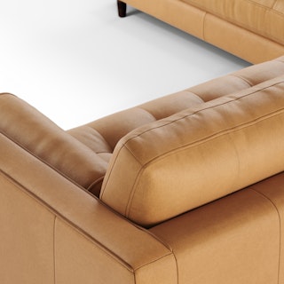 The Sven Corner Sectional is everything you love about the classic Sven, but with double the Sven. The tufted bench seat supports super-long Netflix® marathons, and overstuffed cushions and round bolsters have your back no matter what position you chill in. Over time, the full-aniline leather will develop a beautiful vintage patina. Natural color variations, wrinkles and creases are part of the unique characteristics of this leather. It will develop a relaxed vintage look with regular use.