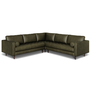 Sven 107" Tufted Leather Corner Sectional - Charme Green