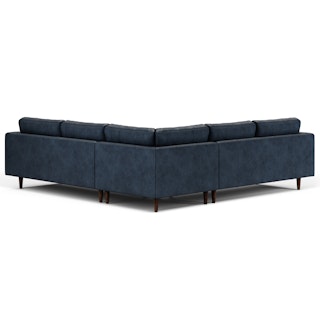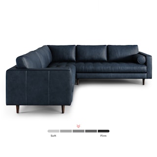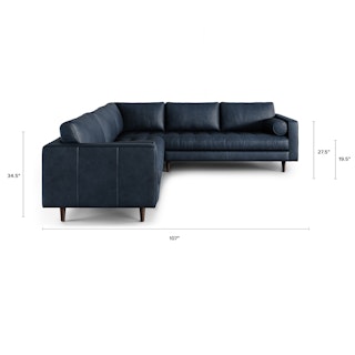 Sven 107" Tufted Leather Corner Sectional - Oxford Blue