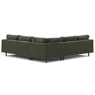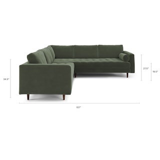 How does a person balance extravagance and practicality? With a velvet sectional sofa, obviously. With lux brushed velvet, loose back cushions and bolsters, and solid wood legs, there’s a reason this is our most popular sofa. A corner blocked wooden frame and slim walnut legs make for a sturdy and stylish movie-watching companion — pair with a smattering of tropical plants and coffee in a pretty mug.