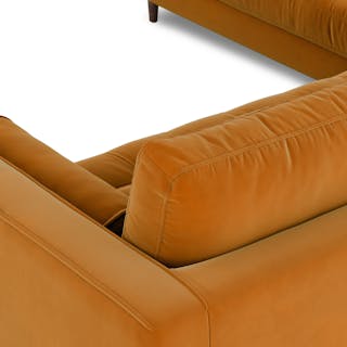 How does a person balance extravagance and practicality? With a velvet sectional sofa, obviously. With lux brushed velvet, loose back cushions and bolsters, and solid wood legs, there’s a reason this is our most popular sofa. A corner blocked wooden frame and slim walnut legs make for a sturdy and stylish movie-watching companion — pair with a smattering of tropical plants and coffee in a pretty mug.