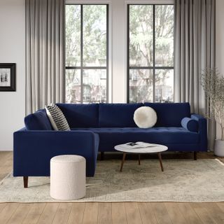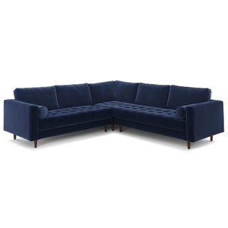 Sven 107" Tufted Velvet Corner Sectional - Plush Cascadia Blue