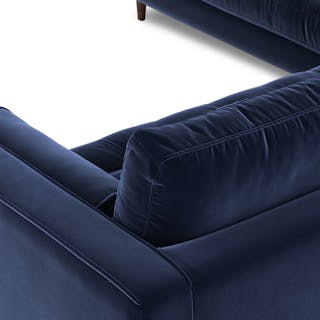 How does a person balance extravagance and practicality? With a velvet sectional sofa, obviously. With lux brushed velvet, loose back cushions and bolsters, and solid wood legs, there’s a reason this is our most popular sofa. A corner blocked wooden frame and slim walnut legs make for a sturdy and stylish movie-watching companion — pair with a smattering of tropical plants and coffee in a pretty mug.