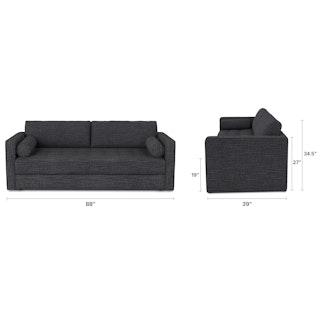 Ever looked at our best-selling Sven and thought “Huh, this thing looks so comfy, I wish they made a Sofa Bed version”. Well, dream no longer. The Sven Sofa Bed is here to make all your slumber-themed dreams come true. The Sven Sofa Bed is Indistinguishable from the rest of the collection, with its signature tufted bench seat, overstuffed cushions, and round bolsters still present. But now, simply grab the two pulls on the backside of the seat cushion and unfold the mattress for a seamless transition—Classy timeless couch to snoozeland in seconds, what's not to love?