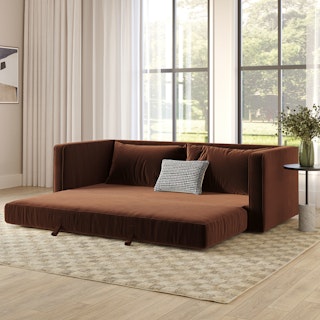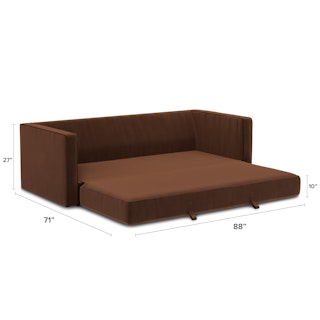 Ever looked at our best-selling Sven and thought “Huh, this thing looks so comfy, I wish they made a Sofa Bed version”. Well, dream no longer. The Sven Sofa Bed is here to make all your slumber-themed dreams come true. The Sven Sofa Bed is Indistinguishable from the rest of the collection, with its signature tufted bench seat, overstuffed cushions, and round bolsters still present. But now, simply grab the two pulls on the backside of the seat cushion and unfold the mattress for a seamless transition—Classy timeless couch to snoozeland in seconds, what's not to love?