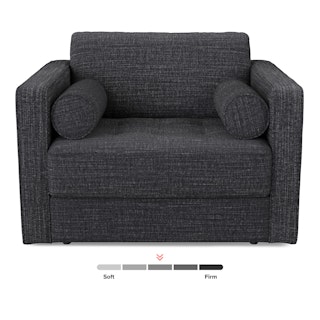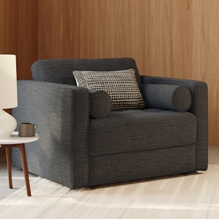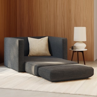You know what they say: if you can't beat 'em, make the extremely cozy lounge chair into a sleeper lounge. People kept falling asleep on the Sven, so we've cut out the middle man and made the Sven Sleeper Lounge Chair. A tufted seat, precise piping, and round bolster pillows, plus! Plus! A fold out mattress so you can take your Sven lounge into a Sven nap. Stick that in your living room and sleep on it.