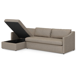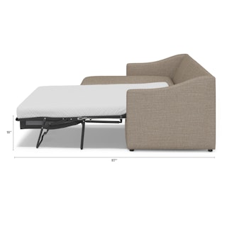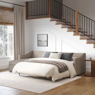 A minimal look with maximum impact... and maximum function. The Landry Sofa Bed marries laid back comfort with elegant details to produce a sofa that is as comfortable hosting movie night as it is your in-laws. Sloping sleigh-style arms and clean, straight lines make it simple to pair this sofa with many styles. With a spacious chest hidden below its chaise seat, and pull-out memory foam mattress, this sofa bed is compact, functional, and comfortable. Almost too comfortable.