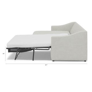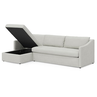 A minimal look with maximum impact... and maximum function. The Landry Sofa Bed marries laid back comfort with elegant details to produce a sofa that is as comfortable hosting movie night as it is your in-laws. Sloping sleigh-style arms and clean, straight lines make it simple to pair this sofa with many styles. With a spacious chest hidden below its chaise seat, and pull-out memory foam mattress, this sofa bed is compact, functional, and comfortable. Almost too comfortable.