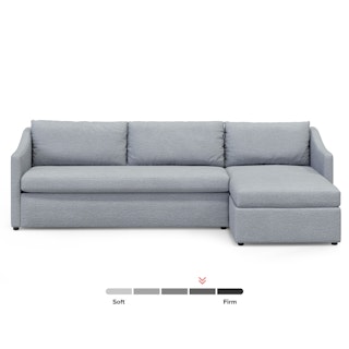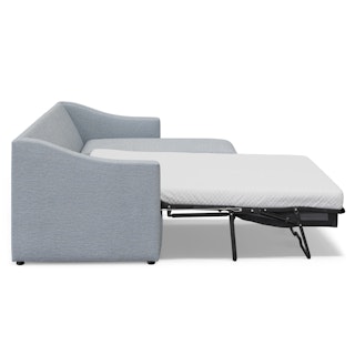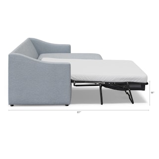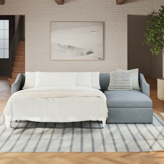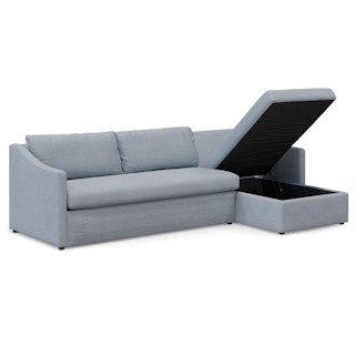 A minimal look with maximum impact... and maximum function. The Landry Sofa Bed marries laid back comfort with elegant details to produce a sofa that is as comfortable hosting movie night as it is your in-laws. Sloping sleigh-style arms and clean, straight lines make it simple to pair this sofa with many styles. With a spacious chest hidden below its chaise seat, and pull-out memory foam mattress, this sofa bed is compact, functional, and comfortable. Almost too comfortable.